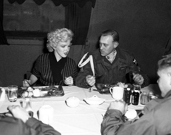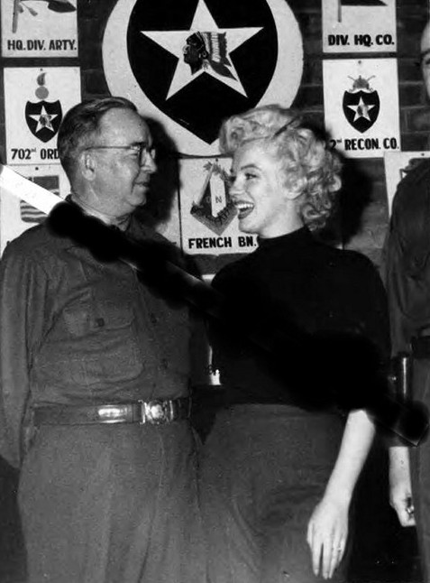 После этой поездки Монро передали командиру второй пехотной дивизии — генерал-майору Уильяму Бериджеру. Командующий генерал пригласил ее отобедать в военной столовой вместе с солдатами.